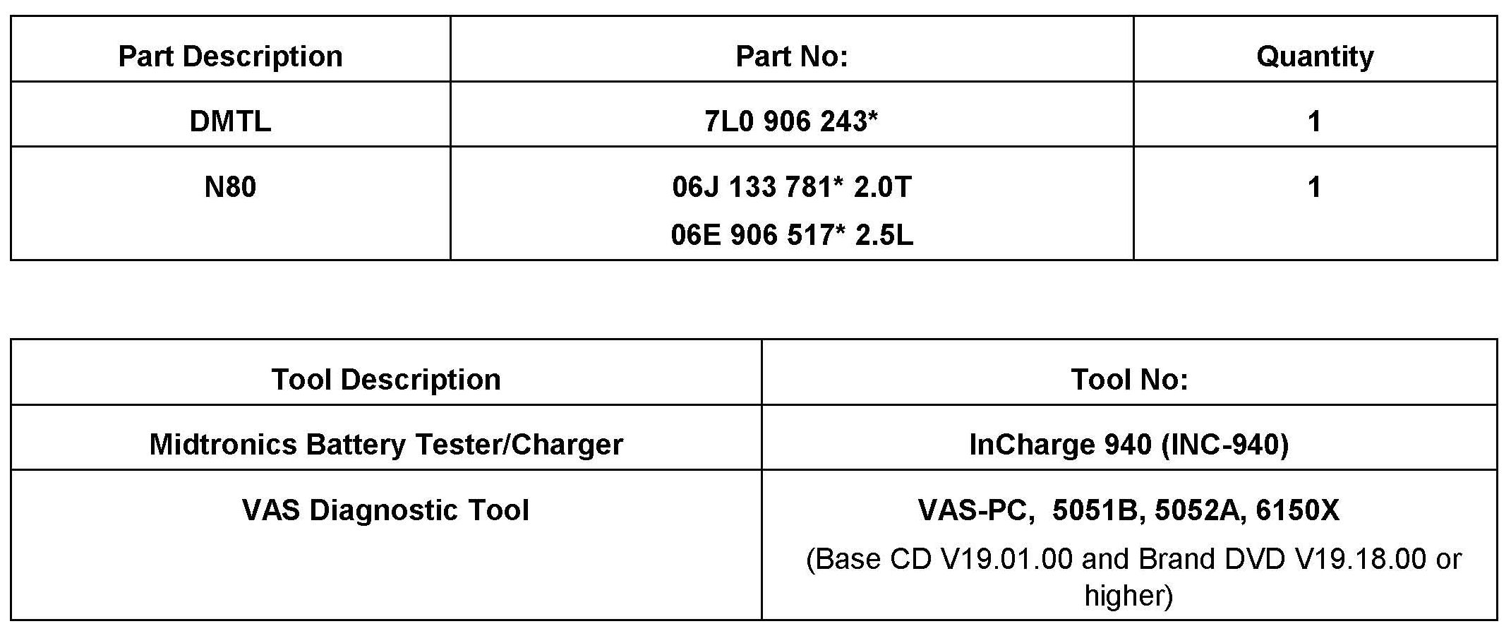 Always check with your Parts Dept. and Repair Manuals for the latest information.