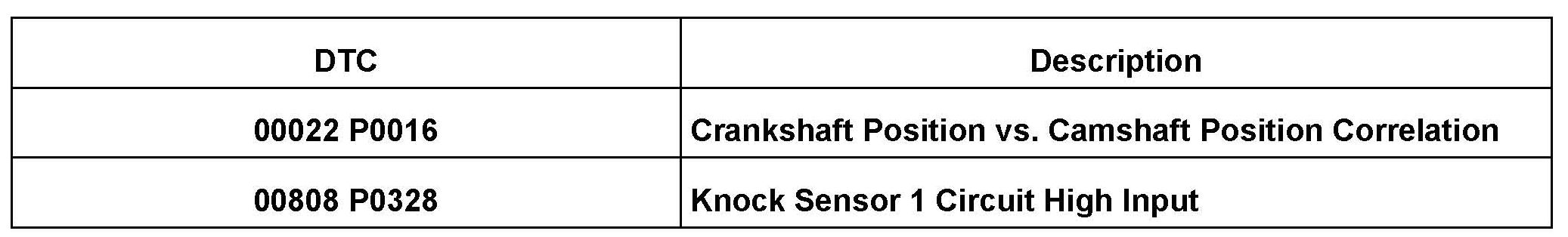 The following entries are logged in the engine control module (ECM):