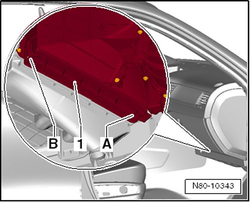 - Release the tab -B- and unhook the rear cover -1- -A-.
