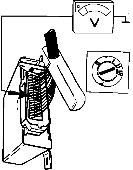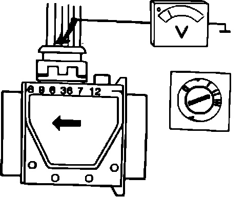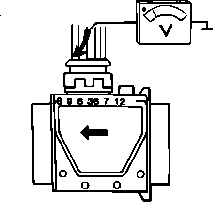 2. With engine running at operating temperature connect a volt meter between terminal 8 of the air mass meter and ground.