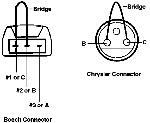 3. Turn ignition ON and bridge terminals B and C several times at the distributor harness. Coil wire should spark each time the terminals are bridged.