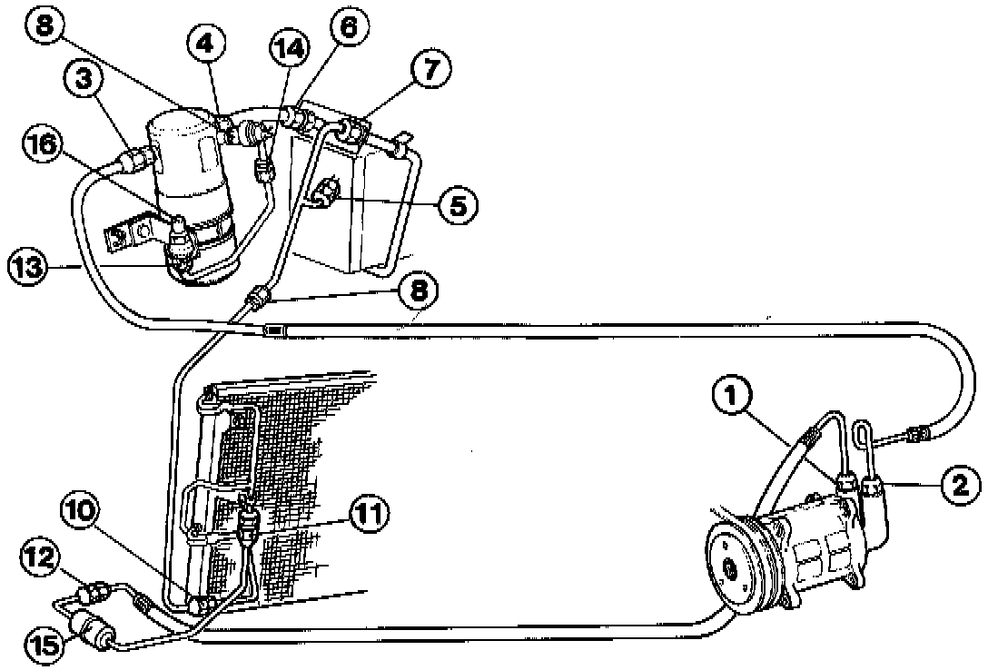 7. To evaporator. Expansion tube (orifice) location - 12 (8.9)