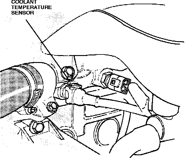 The coolant temperature sensor is located in the cylinder head at the left front of the engine.