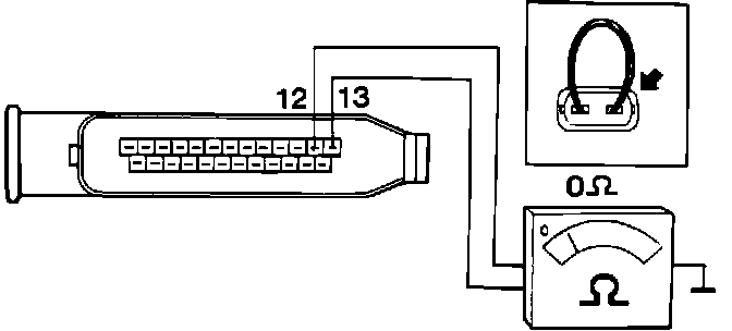 9. Connect an ohmmeter between pin 12 (brown) and 13 (green) at ECU connector.