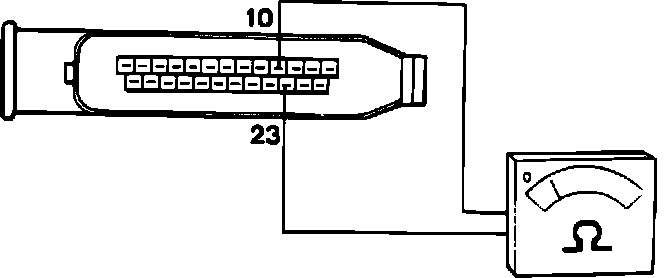 8. Check crankshaft position/speed sensor by connecting an ohmmeter between pin 10 (red) and 23 (blue).
