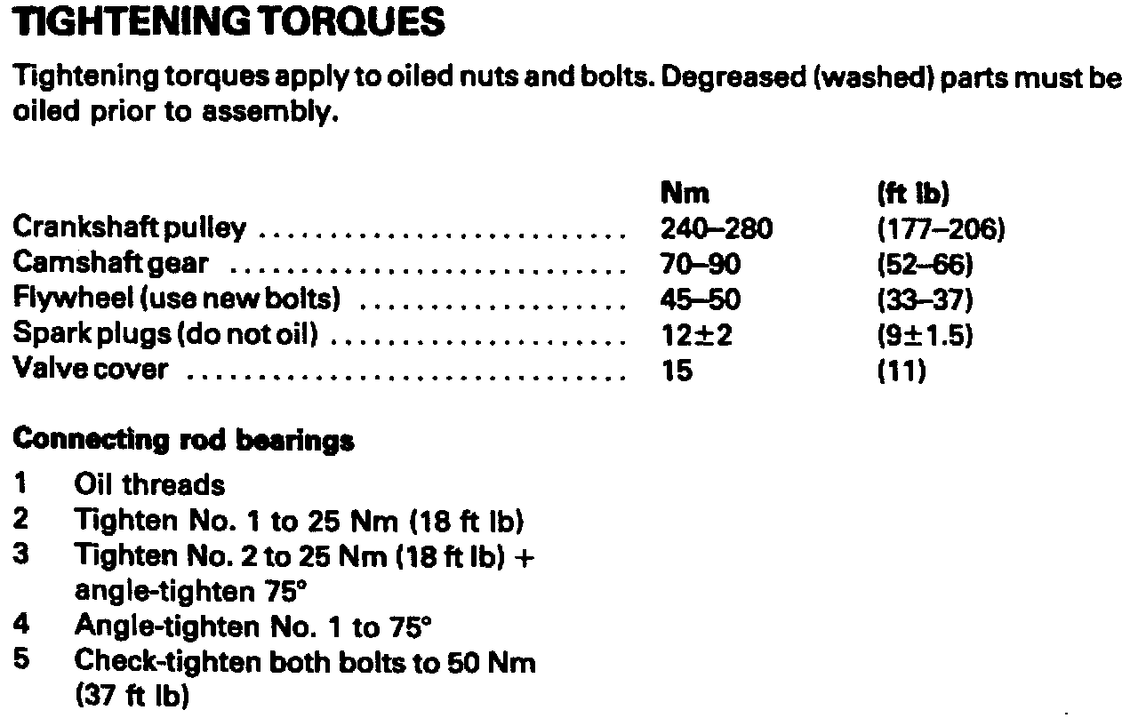 Engine Tightening Specifications