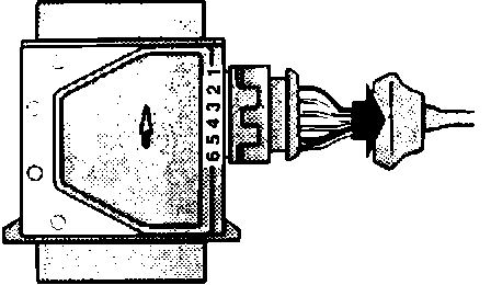 6. Check mass air flow sensor by connecting an ohm meter between ECU connector pin 6 and 7.