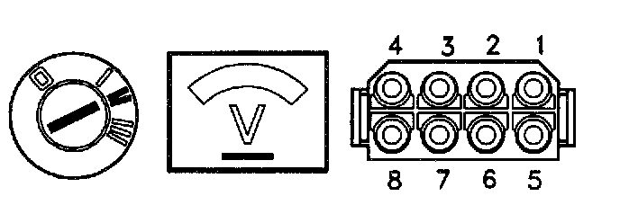 Connect an ohmmeter between terminal 8 in the connector and GND.