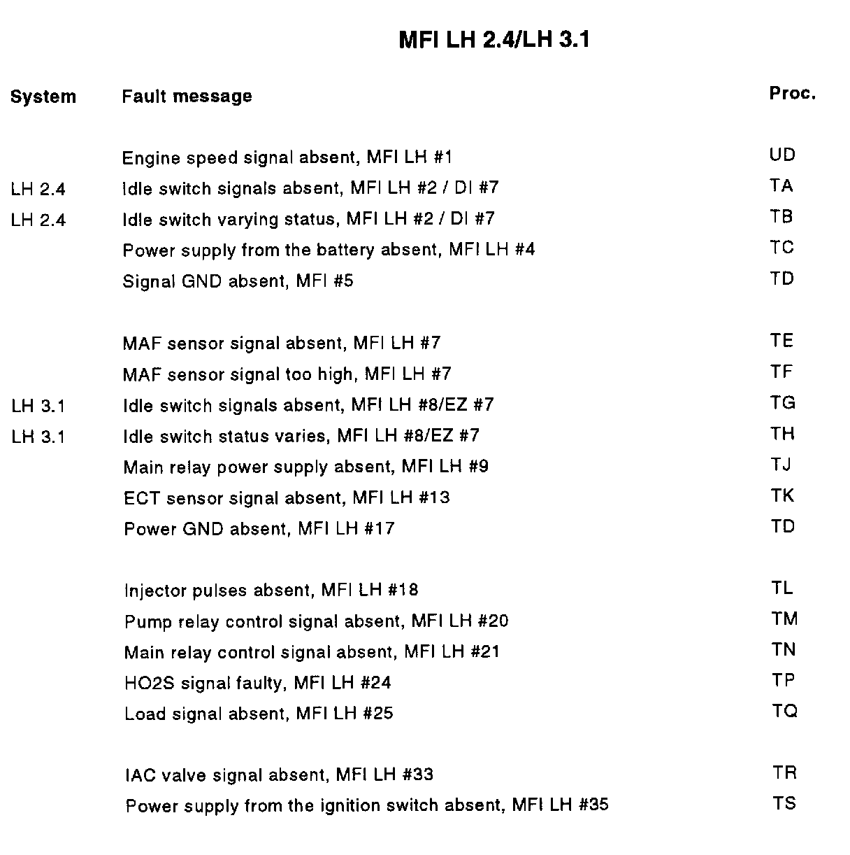 Unless otherwise indicated in the system column, fault messages apply to both LH 2.4 and LH 3.1.