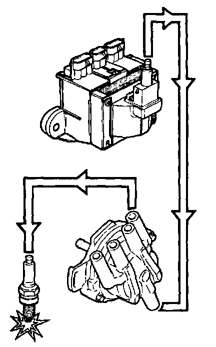 The high tension system consists of the ignition coil which generates high tension which is then transmitted to the distributor.