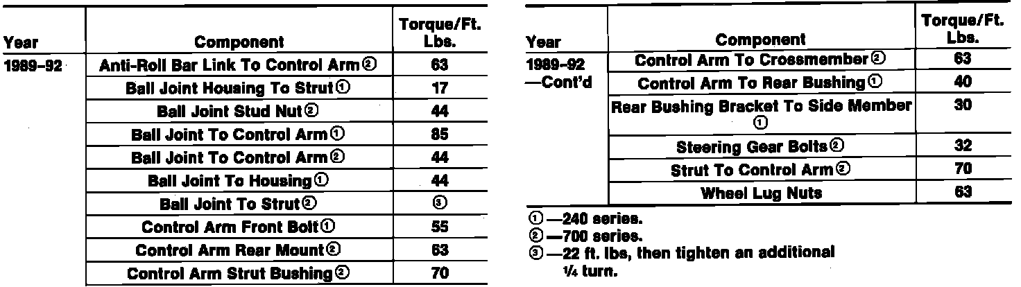 Tightening Specifications:
