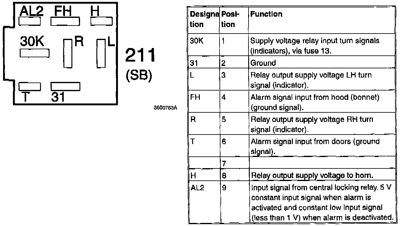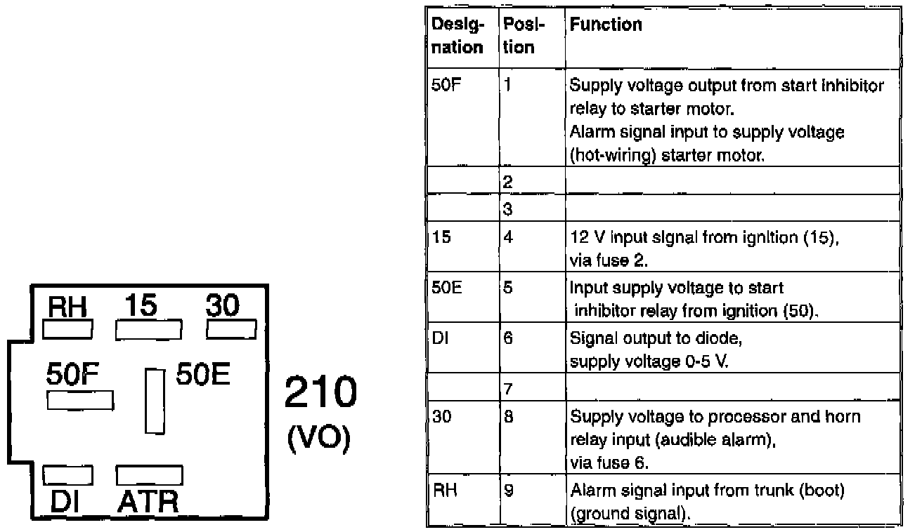 The control module is mounted on the relay plinth (positions 210/211) in the passenger compartment fusebox. There are three integral relays for: