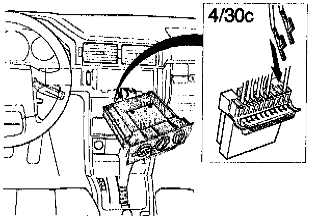 ^ Remove control module and detach connector 4/30C according to Service Manual - operation BD, Connection and disconnection of test box.