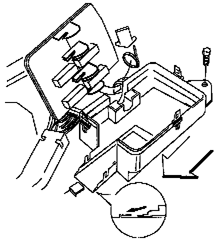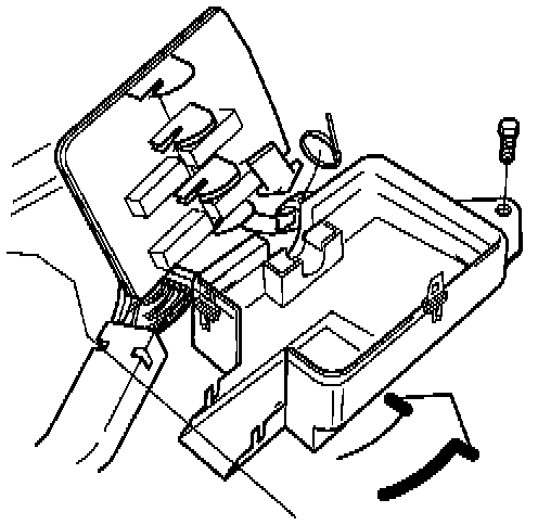 - Lower section of control module box. Pull it backwards until it comes free from the body plate flap at the front of the control module box.