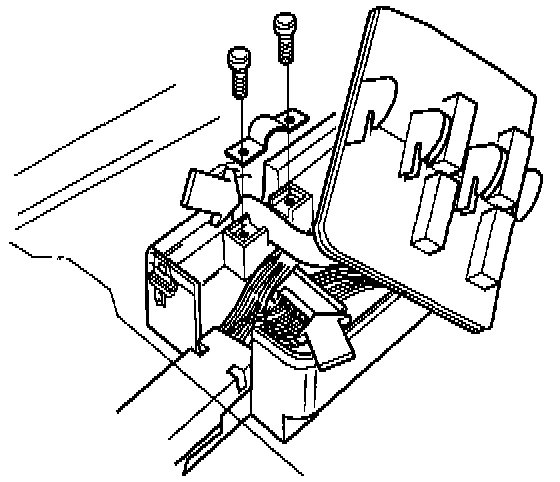 - Lower section of control module box, inserting it at the front, under the body plate flap.