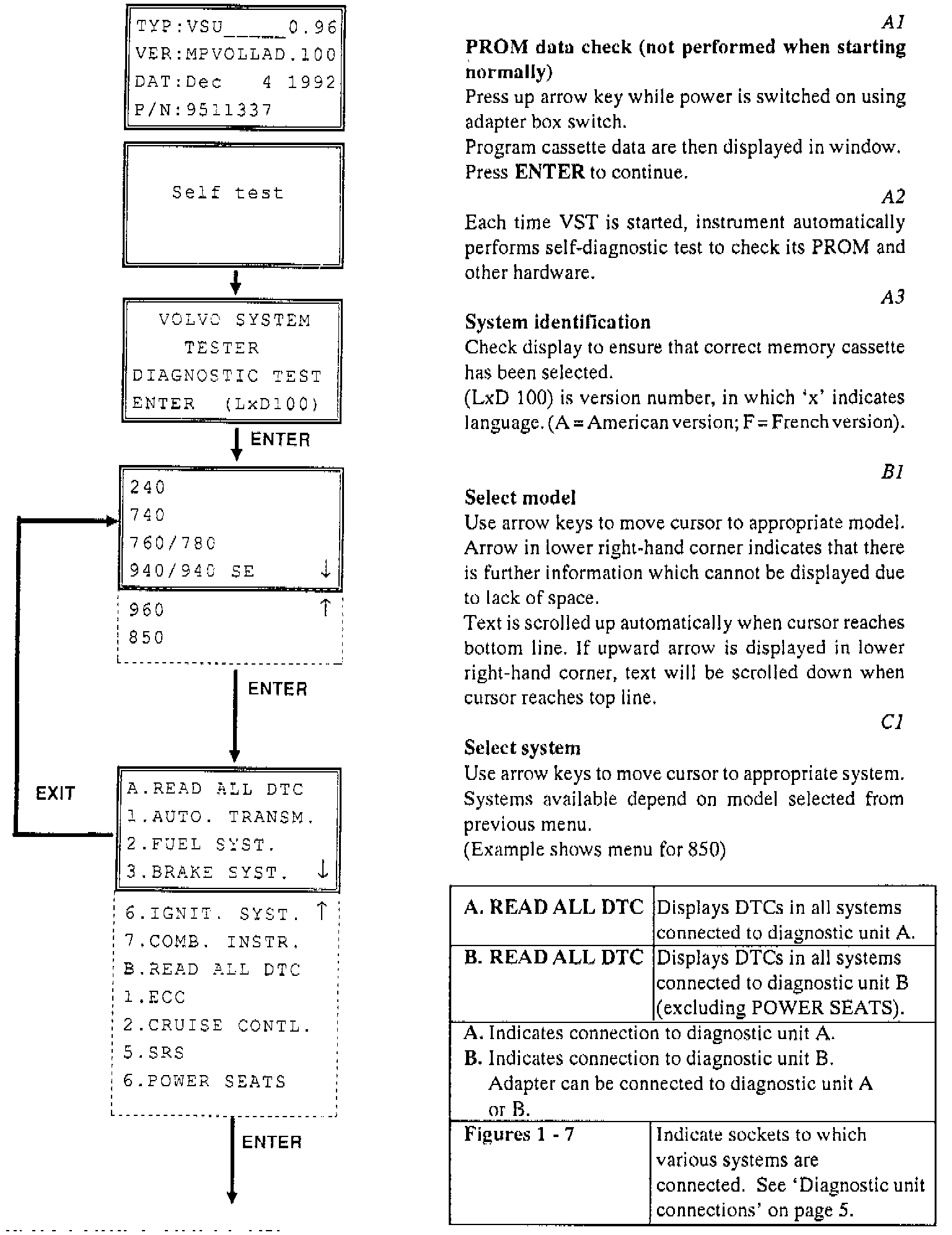 All operation numbers cover connecting the Volvo Scan Tool with the diagnostic key and performing a code readout.