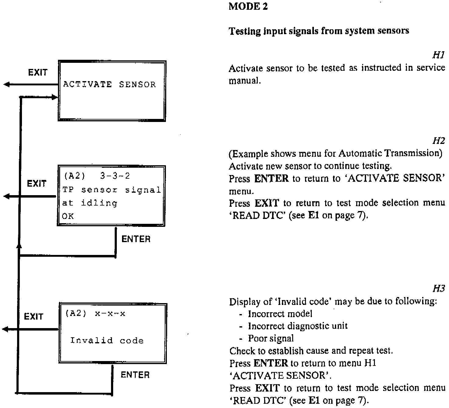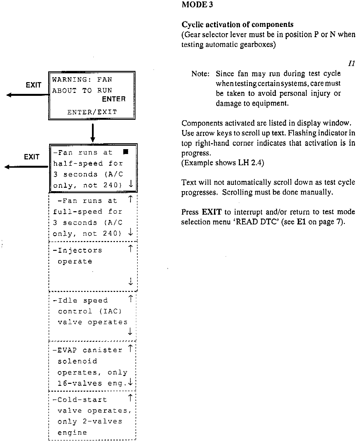 The ignition must be switched on during all tests, with the engine stopped in most cases.