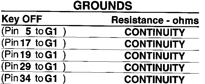 CAUTION: WHEN MEASURING OHMS DISCONNECT THE ECU FROM THE HARNESS PLUG AND NEVER TURN THE IGNITION KEY ON. IT IS P05SIBLE THAT FAILURE TO FOLLOW THESE STEPS WILL RESULT IN DAMAGE TO THE ECU.
