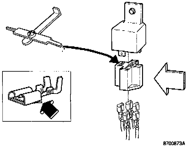 - Detach the cables carefully from the connector's receptacle housing using tool 9814229-2, from repair kit 9814235.