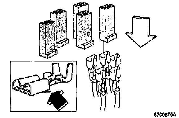 - Straighten the locking tongues carefully and attach the 5 white housing receptacles from the kit.