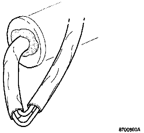 - Route the green cables on the cable harness to the engine compartment through the vacant hole in the grommet under the brace to the suspension tower.