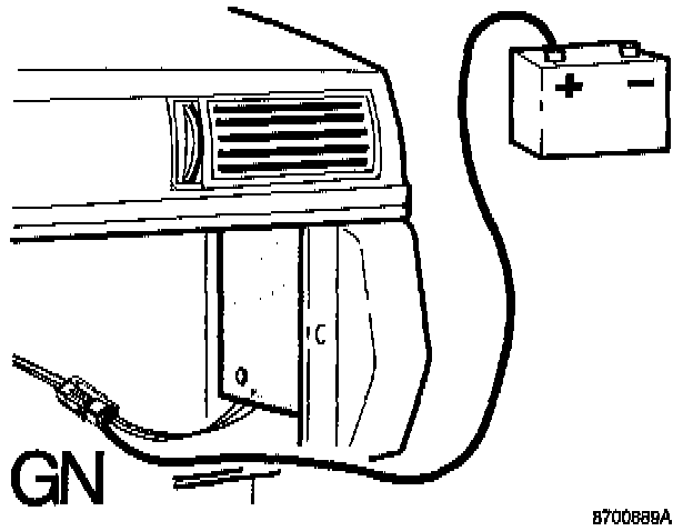 - Make up a cable (about 2 meters (6 ft.) in length) to connect battery positive terminal to the connector on the control module. Connect to green cable, connector terminal 6, for at least 30 seconds while compressor is operating.