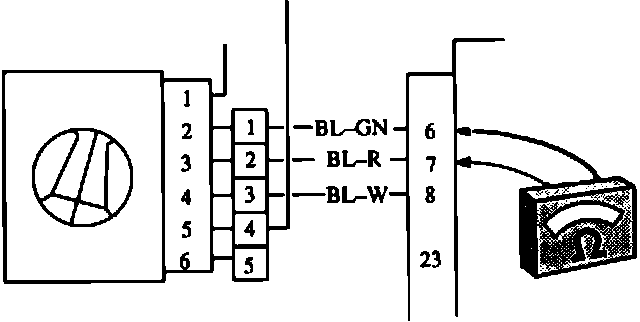 11. Connect the voltmeter between terminals# 1 (ground) and 5 (positive lead from system relay).