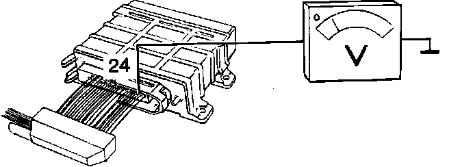 17. Connect a voltmeter at rear of ECU connector between pin 24 (blue) and ground.