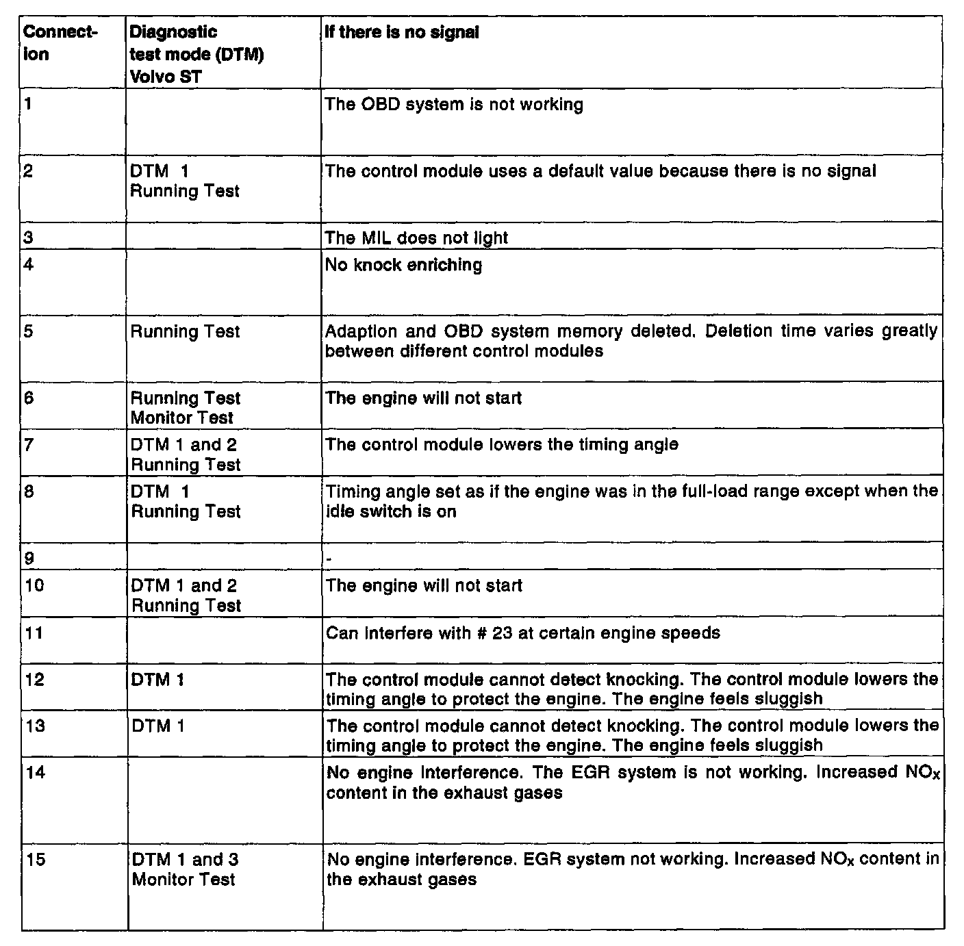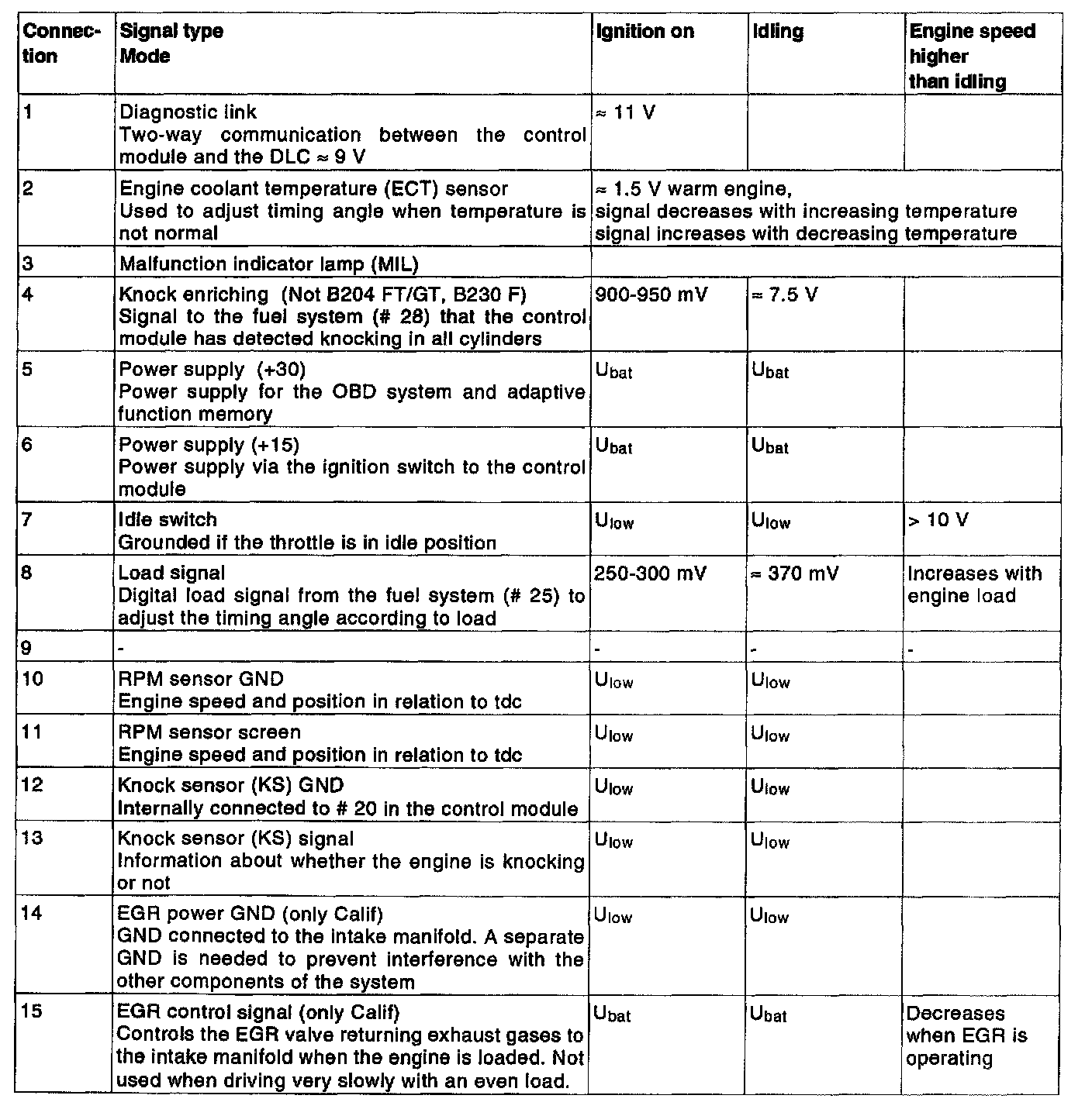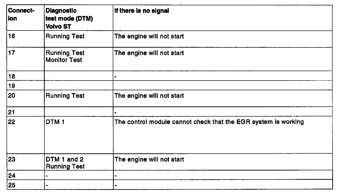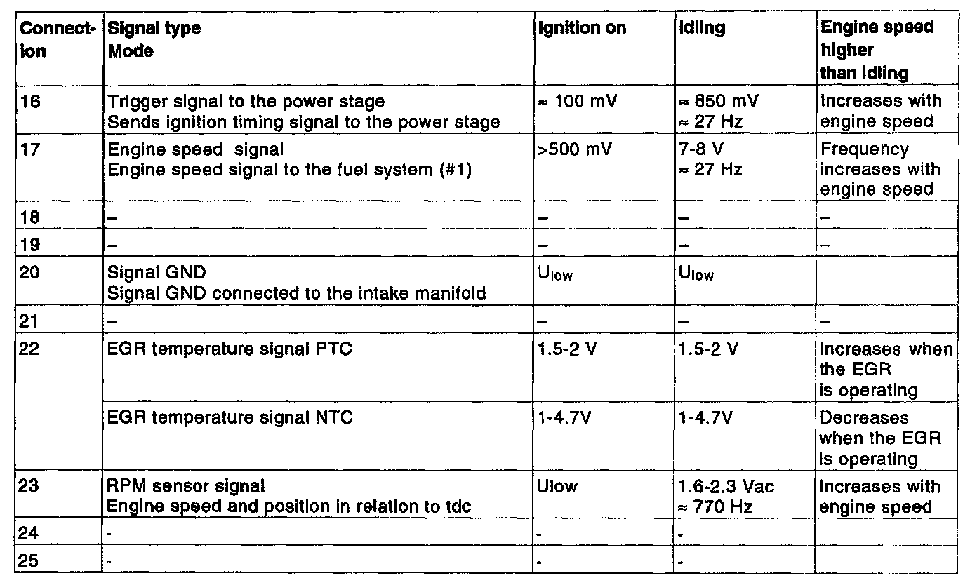 All values displayed below are between the terminal in column 1 and terminal 20. Ensure that this grounding point is properly connected to the negative battery terminal before readings are taken.