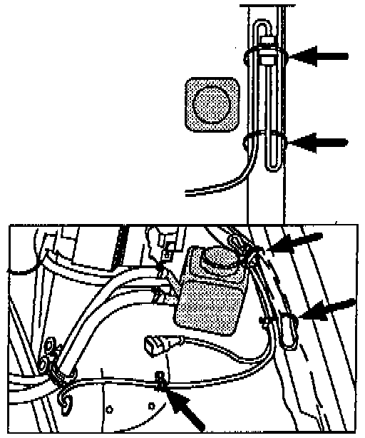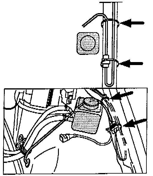 The routing of the sensor lead was changed from the hole in the wheel housing to the connector in the engine compartment. The lead was moved forward and pulled down towards the wheel housing plate. (See illustration). This measure was introduced into production from chassis number: