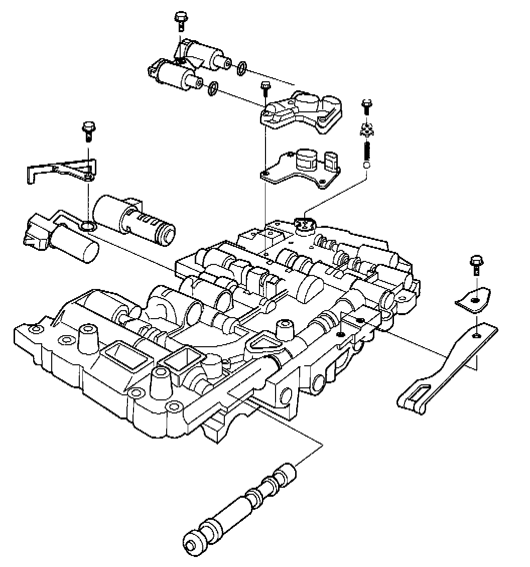In the hydraulic control unit for the AW 30-40/43 transmissions, certain components have been replaced by electromechanical solenoid valves which, in turn, are controlled by the TCM. A kickdown cable and governor are omitted for the same reason.