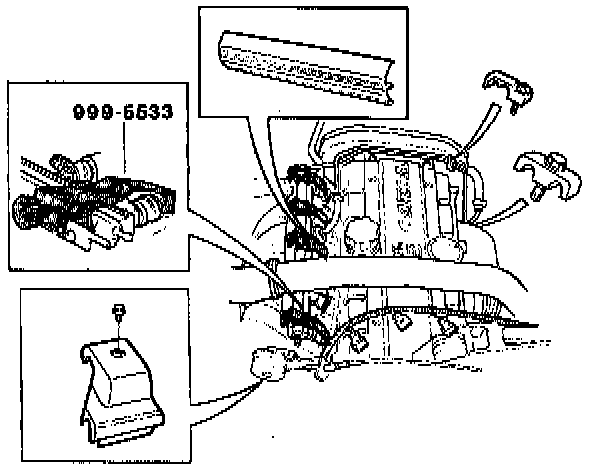 - Intake manifold, by lifting slightly (approx. 20 mm) to free from engine.