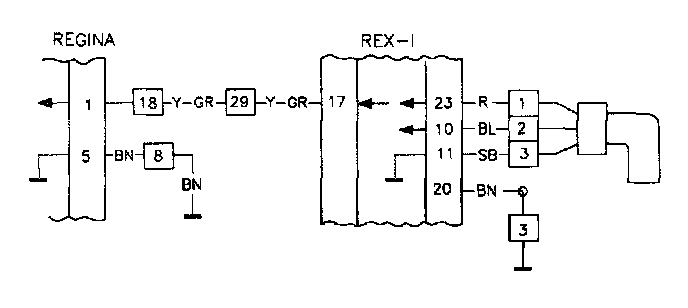 ^ Voltage supply to Regina disappears and engine speed drops below the lower limit so quickly that the System Tester does not have time to check the voltage supply to Rex-I. See example voltage supply from ignition lock.