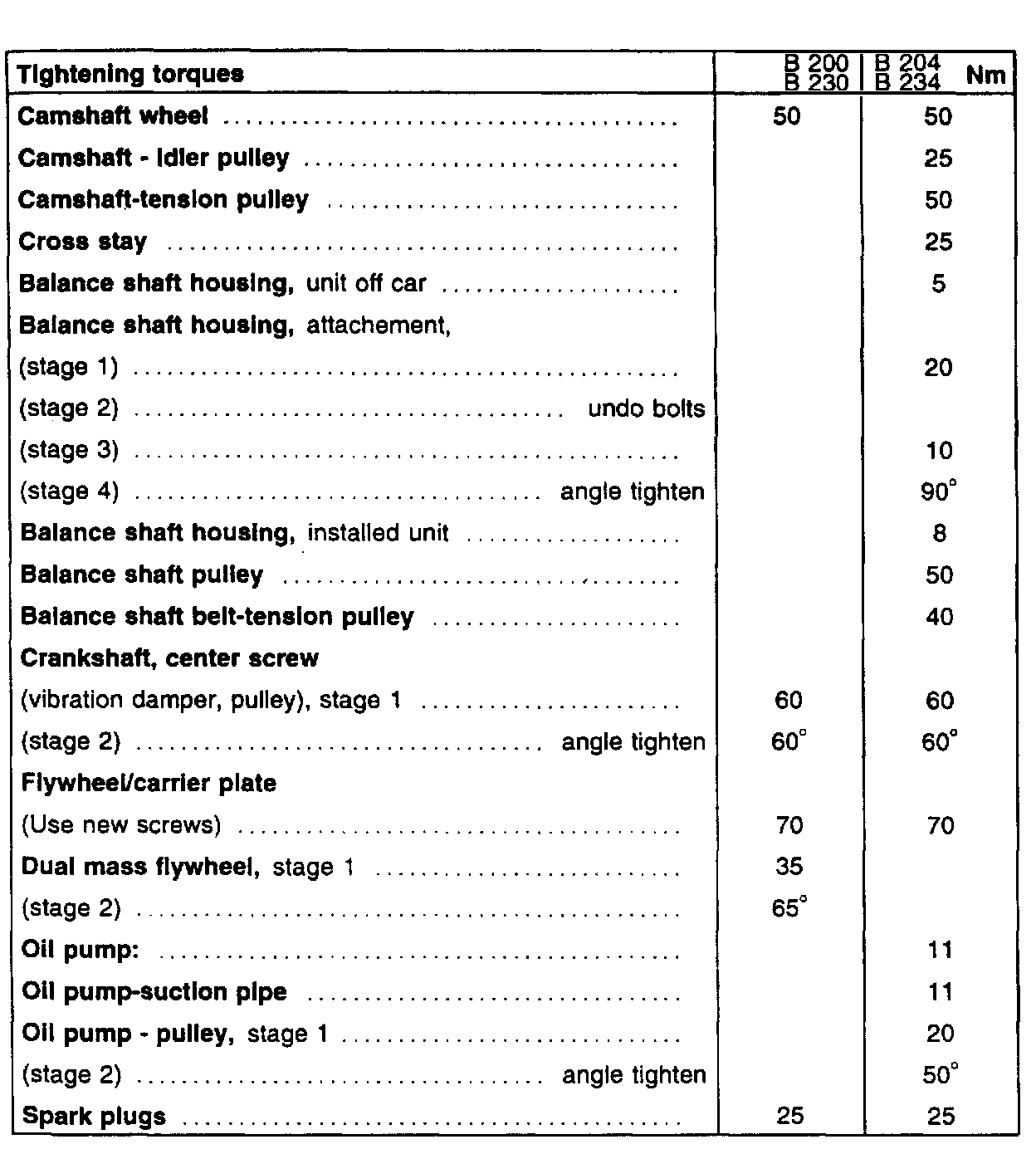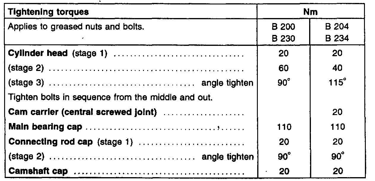 Engine Tightening Specifications