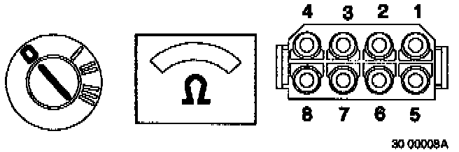 ^ Connect an ohmmeter first between contact 15 and contact 30 on Ignition lock and then between contact 15 and the second contact 30 (on Ignition lock).