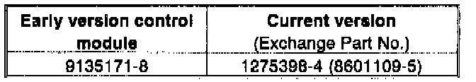 A new revision of the software has been produced for the control module. The illustrated table gives the applicable replacement part numbers: