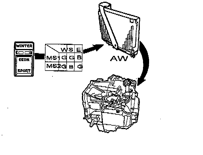 - The driving mode selector allows the driver to select from three modes: Winter (W), Economy (E) and Sport (S). The mode selector has two signal cables, MS1 and MS2, and a ground lead. Driving mode is selected by connecting one or the other, or both signal cables to ground (the signal goes low). Note that MS1 and MS2 signal cables are grounded simultaneously only when the W button is depressed.