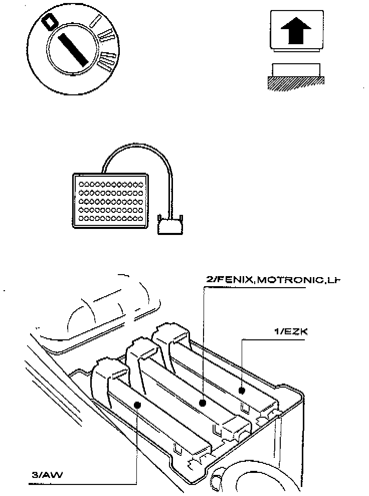 Connect adapter cable tool No. 981 3195 to control module connector and connect test box tool No. 981 3190, or equivalent to adapter.