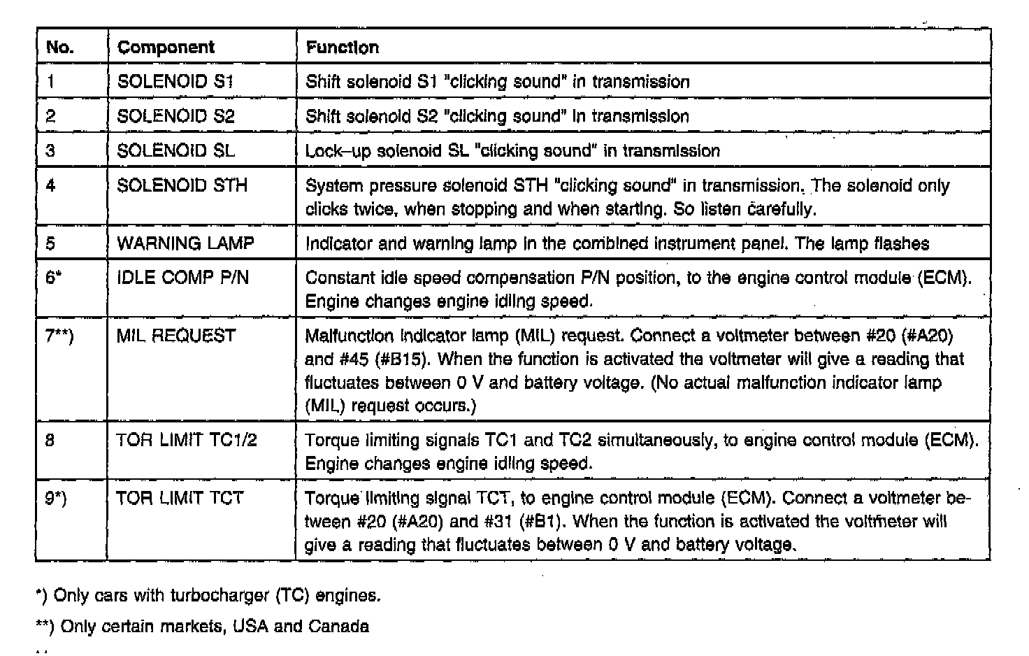 When activating function 7 and 9, no change/symptom is indicated for the engine, transmission or combined instrument.