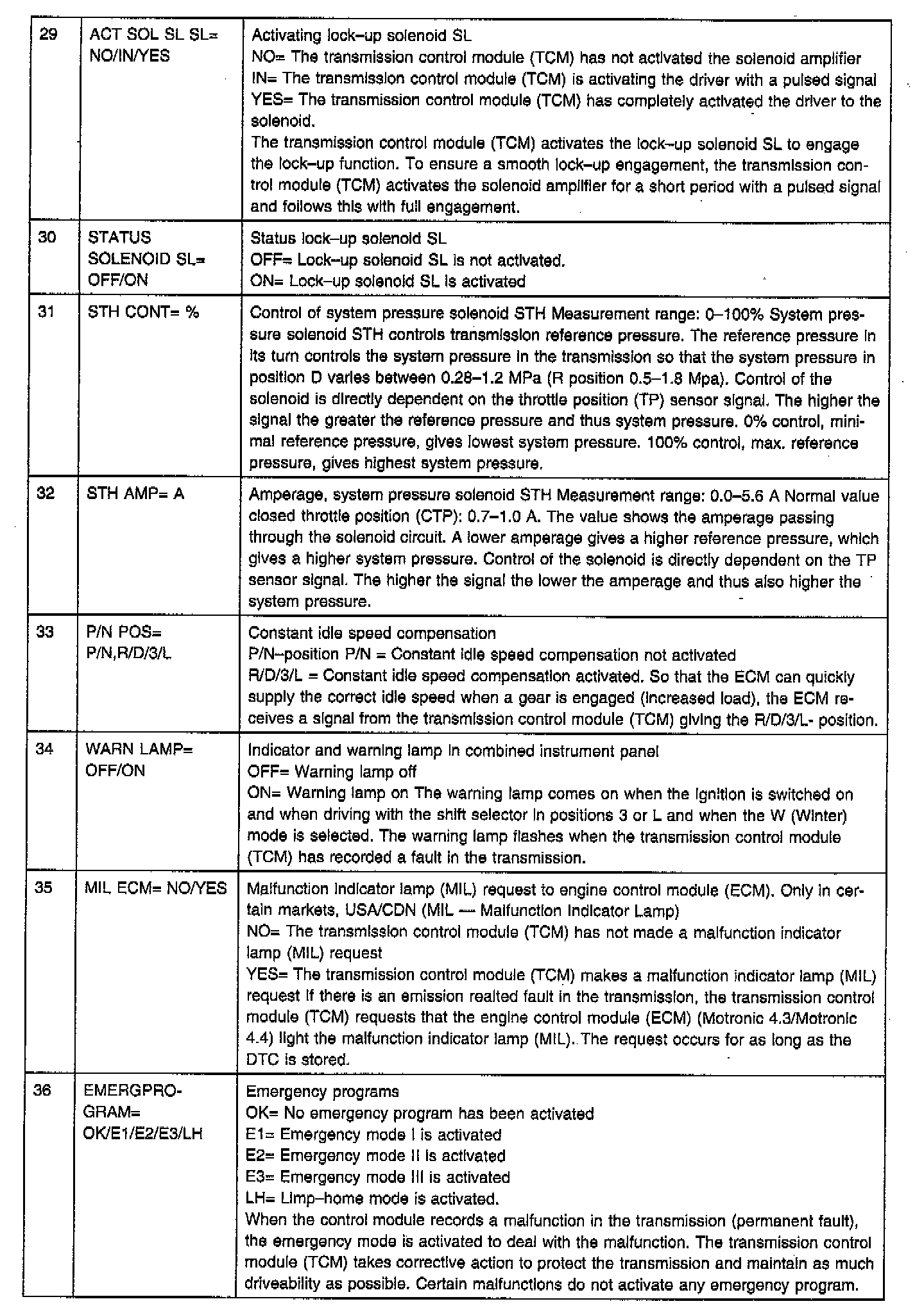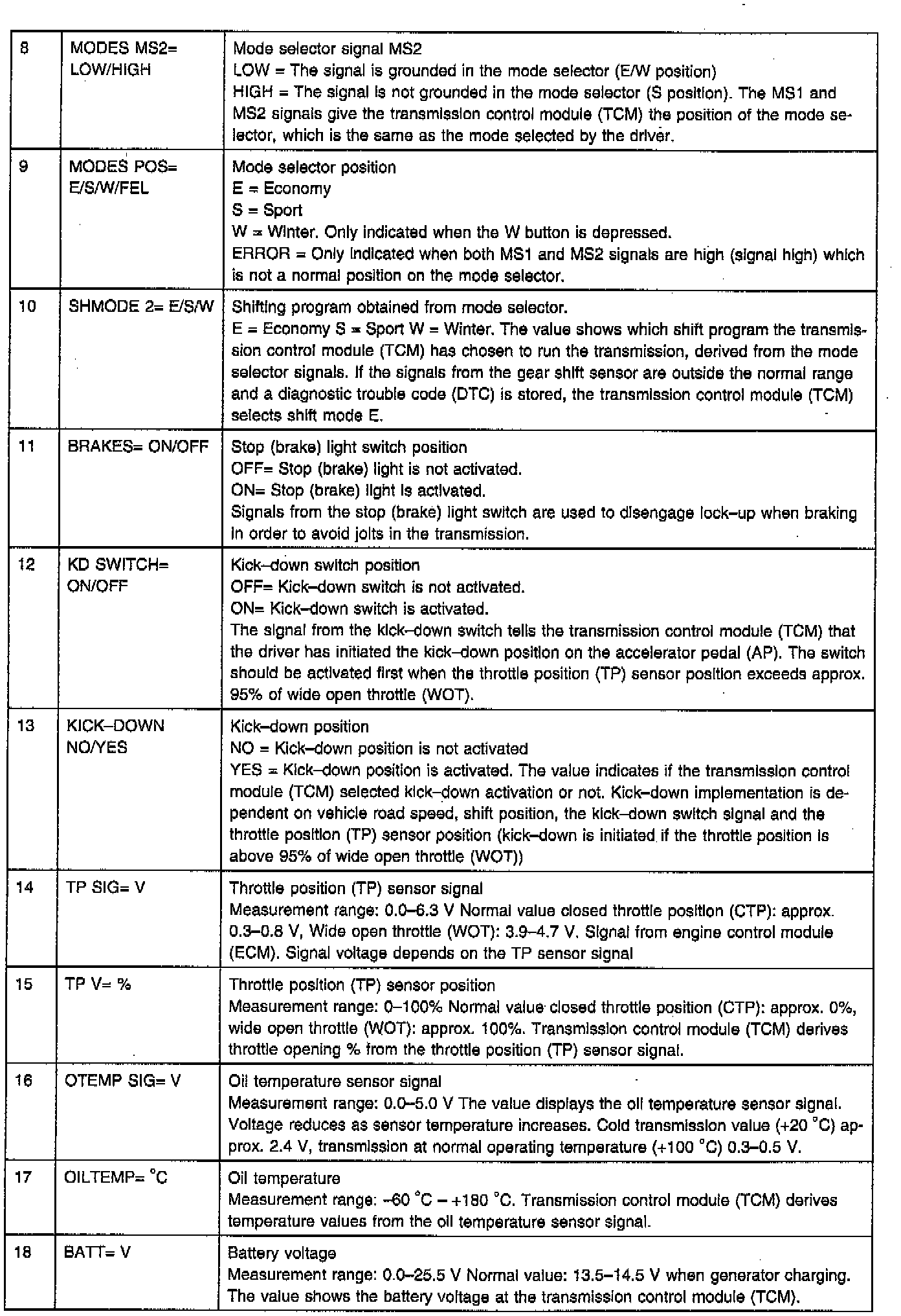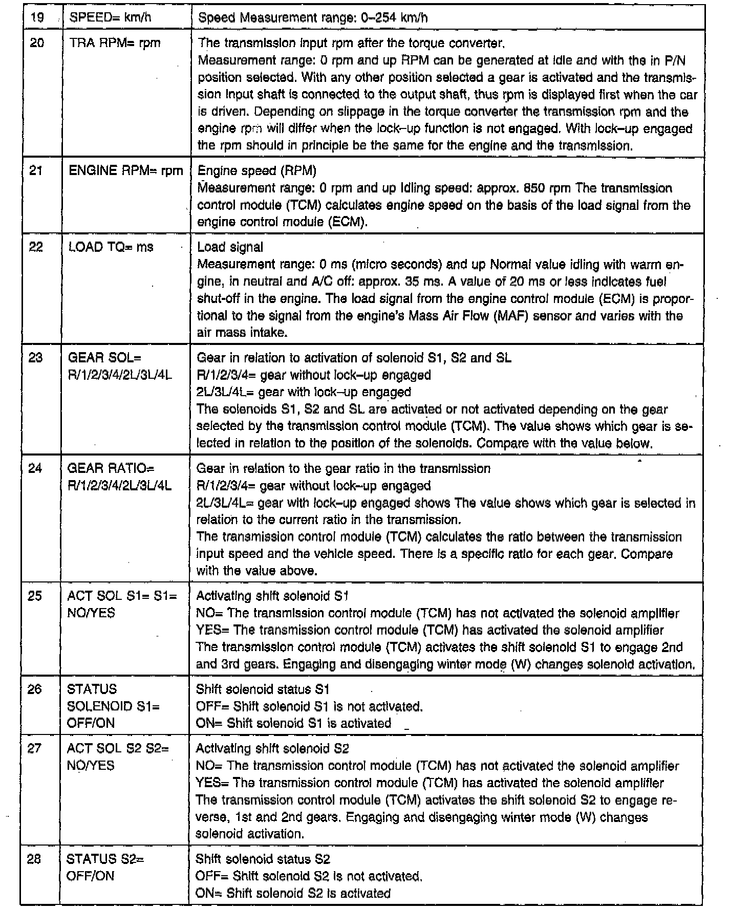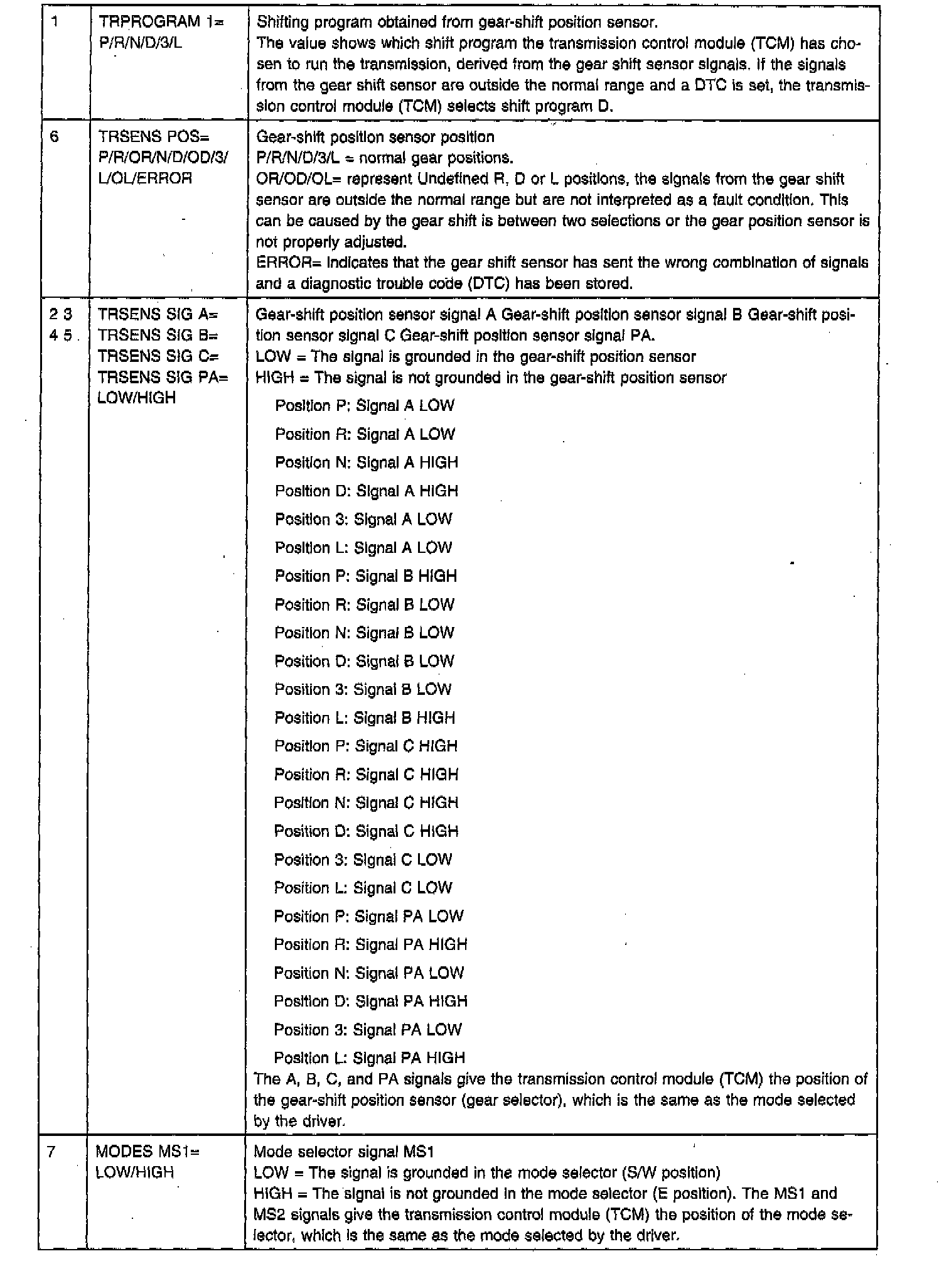Some values are different to those given in Signal Description, Connector A (Terminals A1 Through A30). This is because Scan Tool (ST) values are calculated and filtered by the control module. In some cases the engine must be running to obtain relevant values.