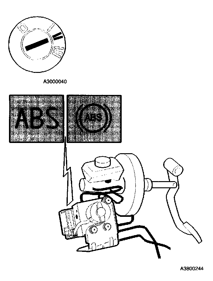 When the ignition is switched on, the ABS warning light is activated by the control module. Check that the warning light goes out after approx. 2 seconds