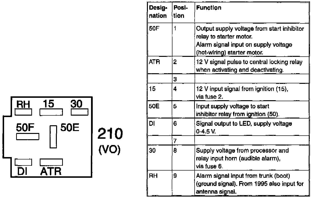 Relay plinth 210 ("B in wiring diagrams)