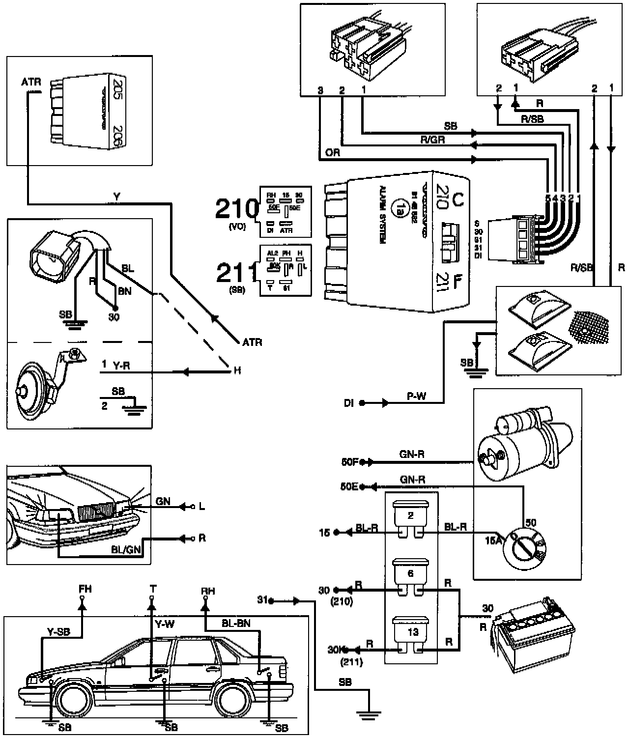 NOTE: Take care to check the wiring diagram for the car concerned, as there may be some differences in designations of connectors etc.