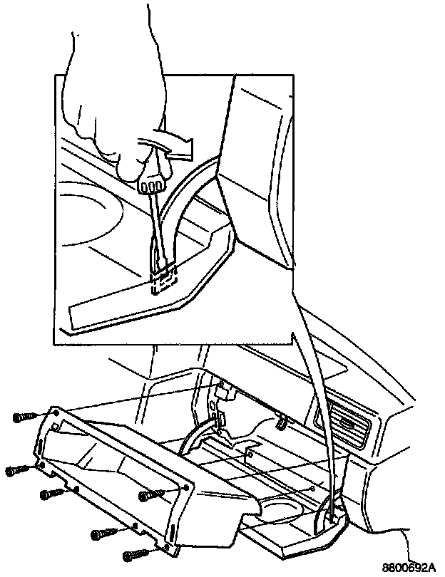 - Remove arms (x 2) from glove compartment lid. Insert a small screwdriver between arm and lid, and prise out arm.