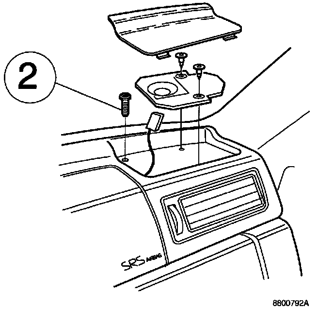 - plug and screws (2 x Torx 25) from the side defroster dashboard vent on the driver's side and the side defroster dashboard vent on the passenger side. See (1) in figure which shows left side.