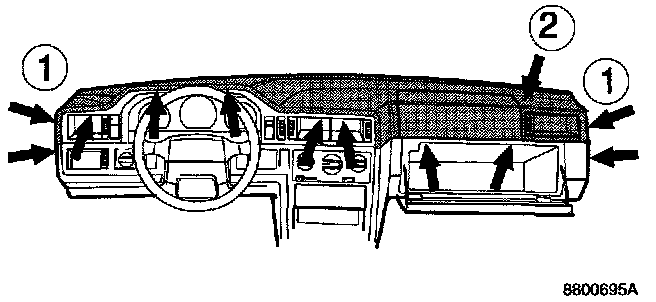 - plug and screws (Torx 25) to the side defroster dashboard vent on the driver's side and the side defroster dashboard vent on the passenger side. See (1) in figure which shows left side.