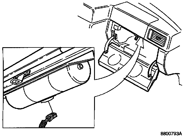 - SRS ignition cable igniter connector to the underside of the passenger module.