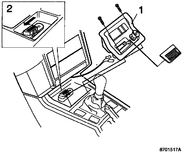 - OBD-II connector (2). Push to one side and press out the connector through the cigarette lighter compartment.