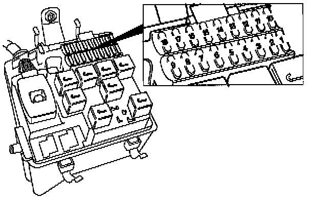 C: Box at side of instrument panel with 26 fuses, used for interior functions.