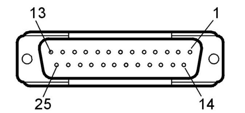 Connect a voltmeter between ground and 25-pin connector terminals: